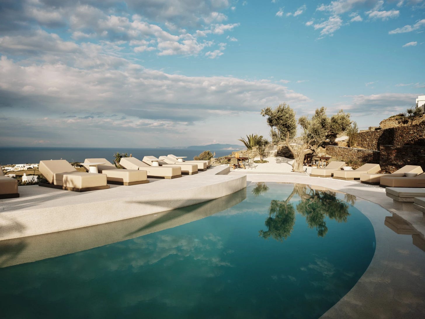 Dreamed up by Greek firm Tsimpos & Associates, the 20-room escape features custom olive-wood furniture, marble floors from neighboring islands including Tinos, Naxos, and Paros, and a palette pulled straight from the Sifnian landscape (think brick red, sea-glass green and sun-faded blue).