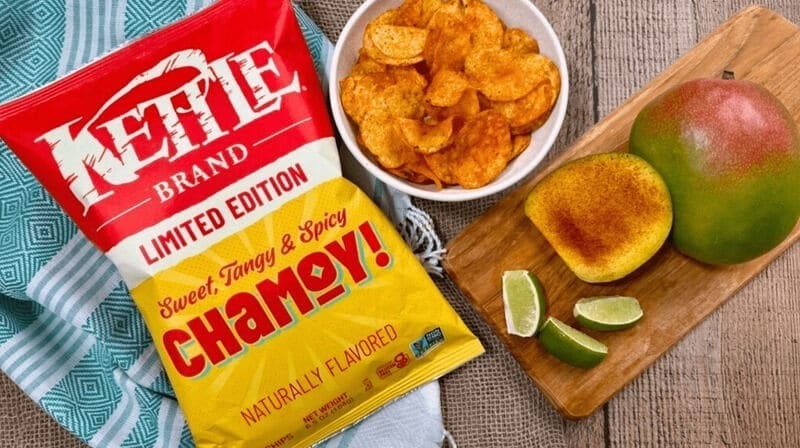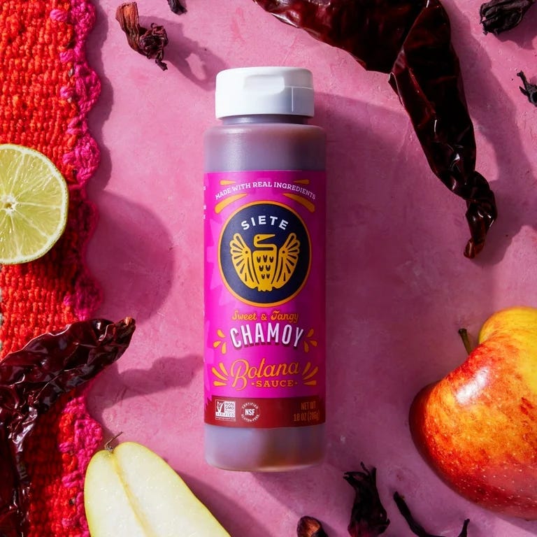 Chamoy is no longer just for candy bags at the bodega. Big brands are banking on the flavor. Kettle Chips launched chamoy crisps that start tart with lime, slide into stone-fruit sweetness and finish with chile heat. Late July dropped chamoy tortilla chips that pack salty, tangy, chile-spiked crunch. Van Holten’s x Chamoy Mega Pickle put the viral TikTok snack straight into a pouch. Spicy, salty, tangy and nationwide, it’s DIY pickle-stuffing made easy. Even Siete Family Foods entered the chat with their Sweet & Tangy Chamoy Botana Sauce, a non-GMO, gluten-free chamoy crafted with dates, lime, chile and hibiscus.
