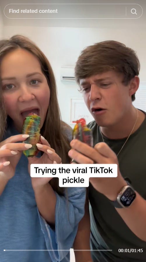 The internet’s calling it chaotic as #ChamoyPickle skyrocketed in popularity via TikTok and ASMR videos (side note: ew) while brands like Selena Gomez’s Rare Beauty and Van Holten’s viral pickles are cashing in. Whole Foods even put chamoy at the center of its 2025 international snacking forecast, highlighting it as a key player in the rise of bold, globally inspired flavors taking over the snack aisle.