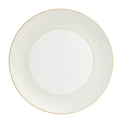 Beautifully crafted in fine bone china, this dinner plate is trimmed with a bold white and gold honeycomb pattern, making it a show-stopping addition to any table setting.