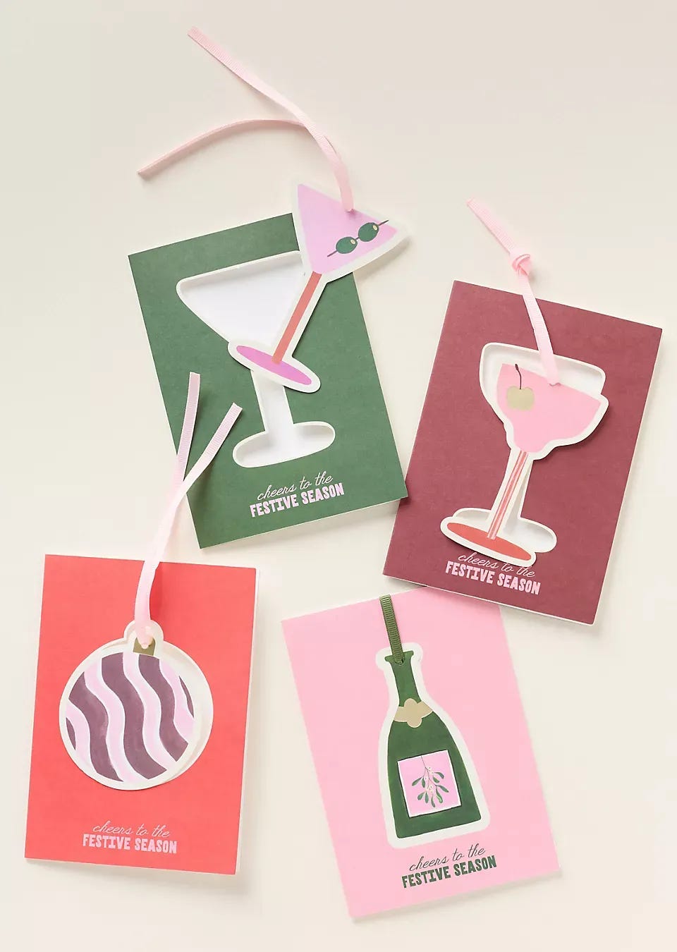 Pop, fizz, cheer. The Cut-Out Bauble Cards bring instant celebration to every letterbox. Featuring a festive red hue and an elegant cut-out flute design, these cards double as mini decorations. Each set includes eight cards and matching envelopes.
