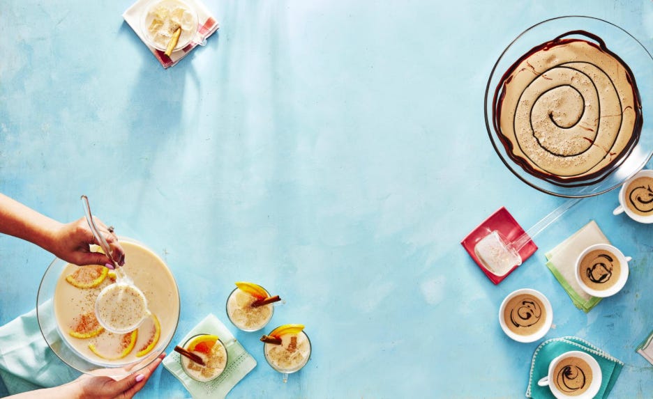Keep it casual: a few crowd-pleasing appetizers, a dessert or two and drinks that don’t require you to play bartender, like a pre-batched cocktail. From My Southern Kitchen, Ivy suggests whipped goat cheese with bacon jam, brown butter chocolate chip cookies or an easy milk punch or bourbon mule for something festive.