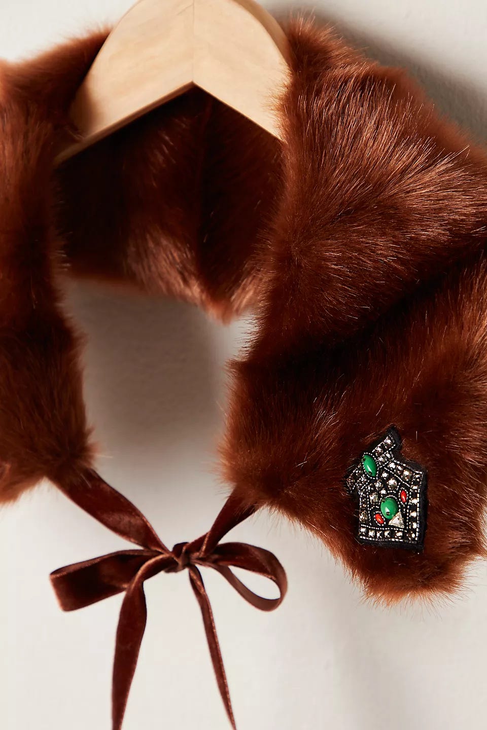 Add a luxe touch to any look with this faux fur collar from Anna Sui, complete with brooch-inspired patches for a statement finish.