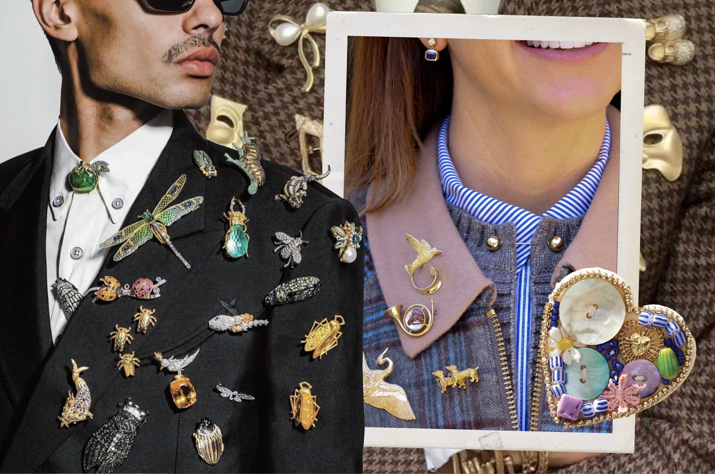 Call it grandma with a glow-up, call it maximalism with manners, call it whatever you want, but brooches are back baby - and not just for your Nana’s sweater set. Men are accessorizing their fits with vintage pins, brides are tucking them into bouquets and vintage cases are getting cleaned out fast. If your group chat hasn’t debated where and when to pin, it’s coming.