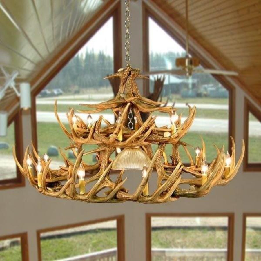 This two-tier antler chandelier turns any room into a luxe lodge moment, with 18 candelabra lights and a 50-inch span.