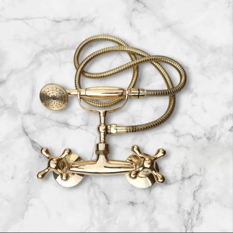 Elevate your bathroom décor with this stunning Telephone-Style Bathtub Faucet, crafted from solid brass with an unlacquered finish. Inspired by vintage charm, its unique telephone-style design adds a classic touch to any bathtub while the finish naturally develops a beautiful patina over time, enhancing its rustic appeal.