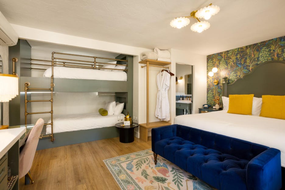 While certainly not new to family-oriented hotels, this new wave of sleeping double has taken hold at design-forward hotels, blending nostalgia with practicality. Hotels, meanwhile, love a layout that doubles the fun (and revenue) per square foot. The result?