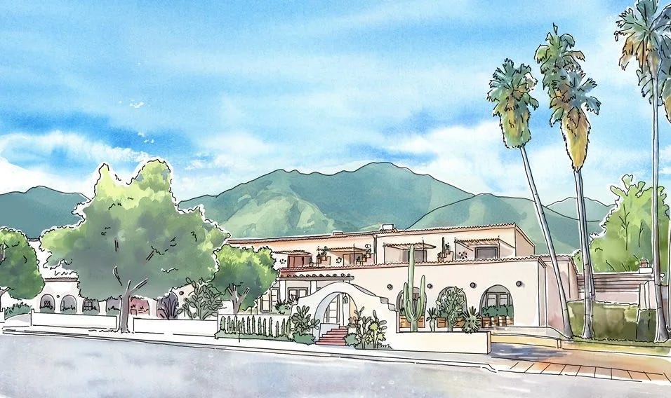 Think historic Spanish Revival bones, restored tile and plasterwork and garden paths reminiscent of a storybook. Add in a palm-fringed pool scene and you’ve got yourself a proper Ojai reset.