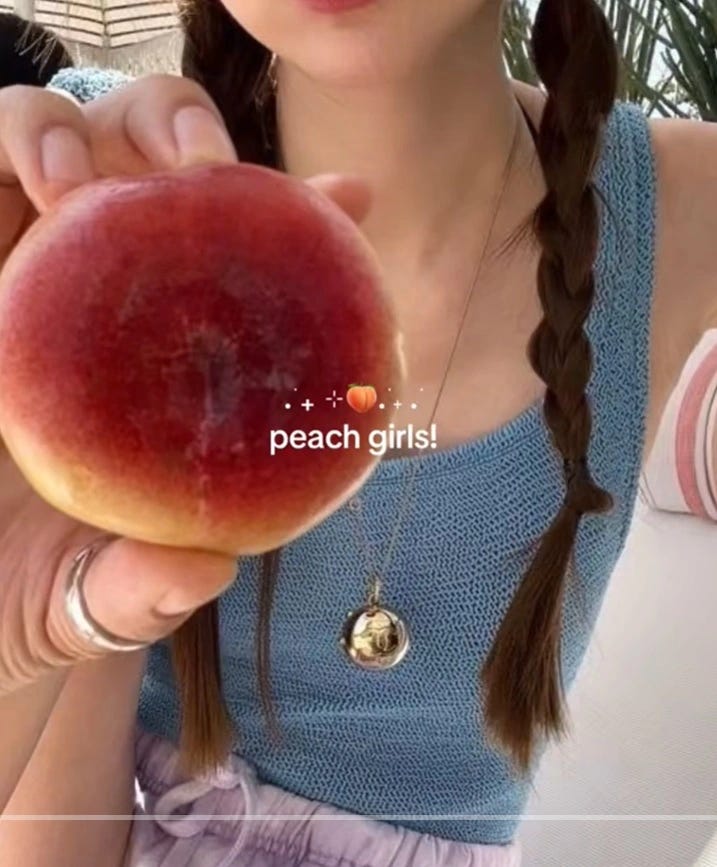 Peach girl is the aesthetic of the summer, and brands are biting in. From fresh produce stickers to full-on fruit cosplay, the peach has broken free of Georgia and gone full runway.