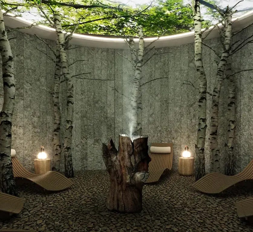 Highlights include a rooftop Endless Vitality Pool with panoramic alpine views, themed wellness zones inspired by nature and cutting-edge treatments including oxygen therapy, cryotherapy, infrared and biohacking.