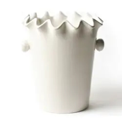 Coton Colors Signature White Ruffle Ice Bucket has round knobs for easy grips and a neutral palette to stun in every home. Perfect for everyday use, this ceramic ice bucket looks equally stylish as a vase for fresh-cut flowers or chilling bottle of bubbly.