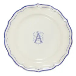 Dress to impress by setting this charming French blue trimmed scalloped plate reminiscent of the French countryside customized with your guest’s initials.