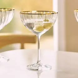 The preferred champagne vessel of Marie Antoinette, the coupe glass is an alternative to the flute, as well as a vessel for shaken or stirred cocktails. With a wide brim saucer design, the glass lends undeniable sophistication to each sip.