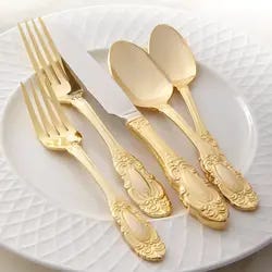 Break out the good stuff for your French-inspired fete with this 65-piece gold-plated set from Neiman Marcus.