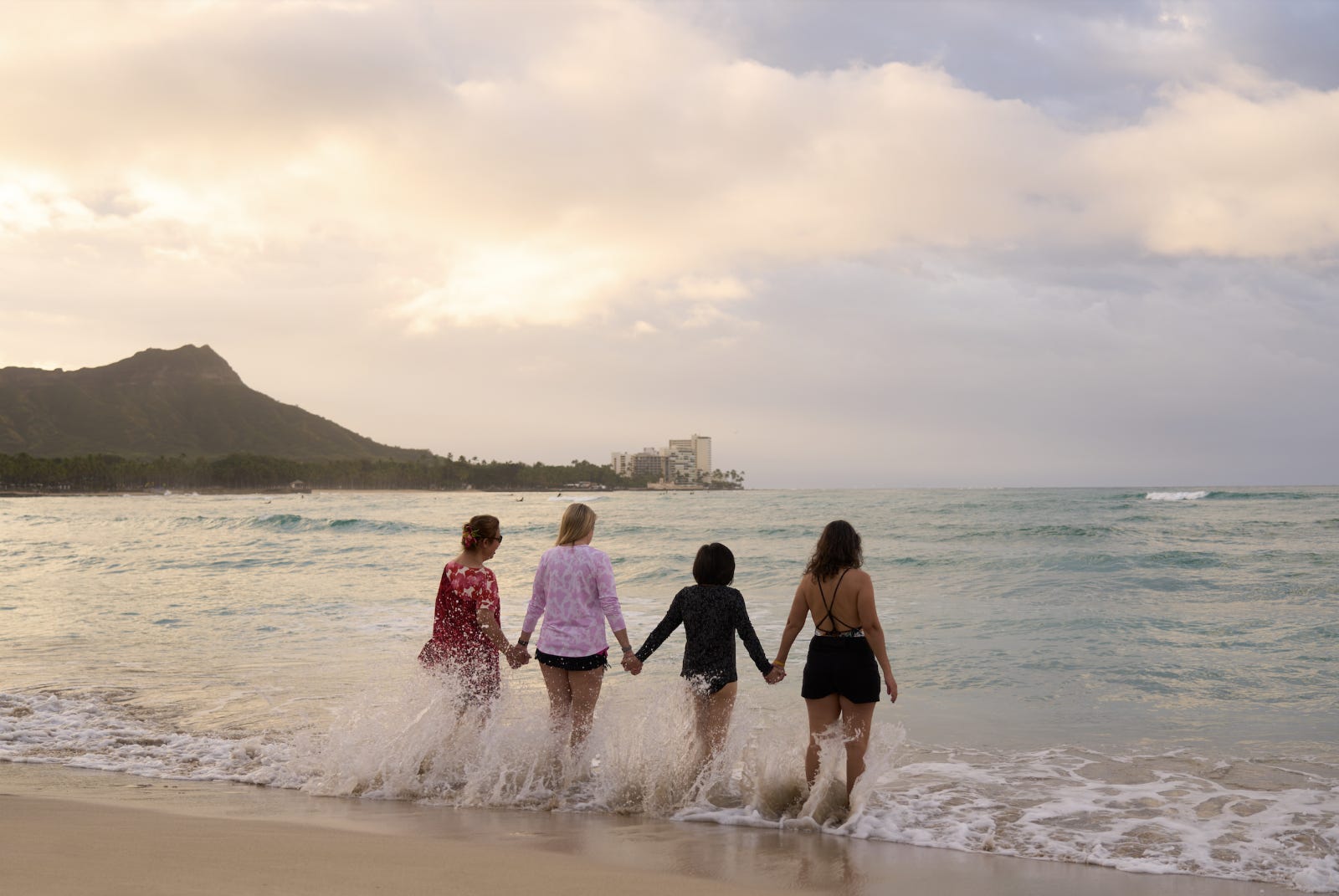 At The Royal Hawaiian, the Hiuwai Sunrise Ceremony invites guests to step into the Pacific at dawn, led by cultural expert Thelma Kehaulani Kam. A saltwater cleansing meets ancestral wisdom, with Hawaiian chants echoing across the shoreline.