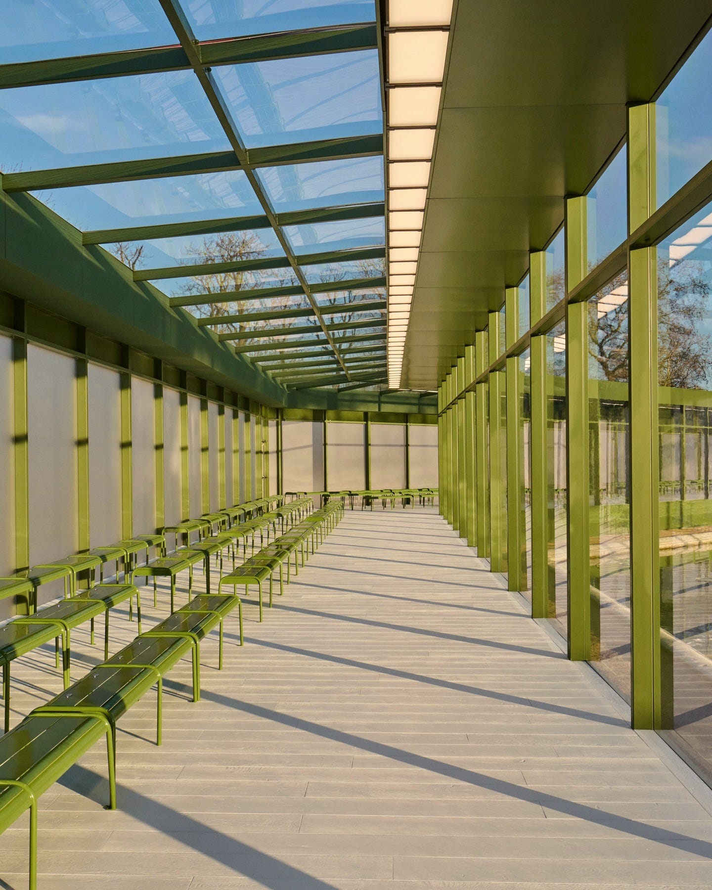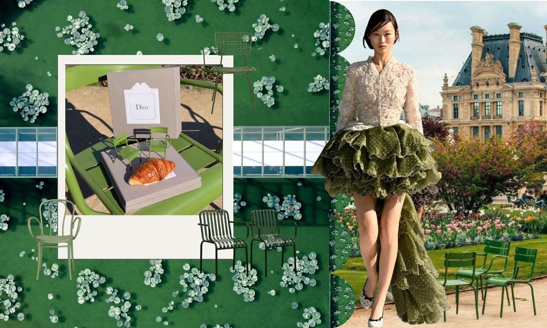 Anderson’s Fall/Winter 2026 show was set in the Tuileries and featured a giant greenhouse, a lily-strewn fountain - just steps from the Musée de l’Orangerie, where Claude Monet’s Water Lilies sit in permanent bloom - and Dior-branded green park benches, natch.