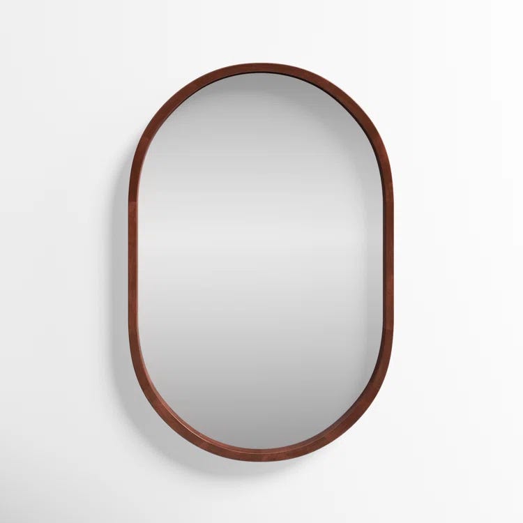 With an unexpected capsule shape, this mirror adds warmth and dimension while presenting styling + storage opportunities.