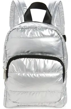 Voluminous quilting and a metallic exterior add eye-catching charm to a spacious backpack furnished with multiple compartments perfect for your kiddo's daily essentials.
