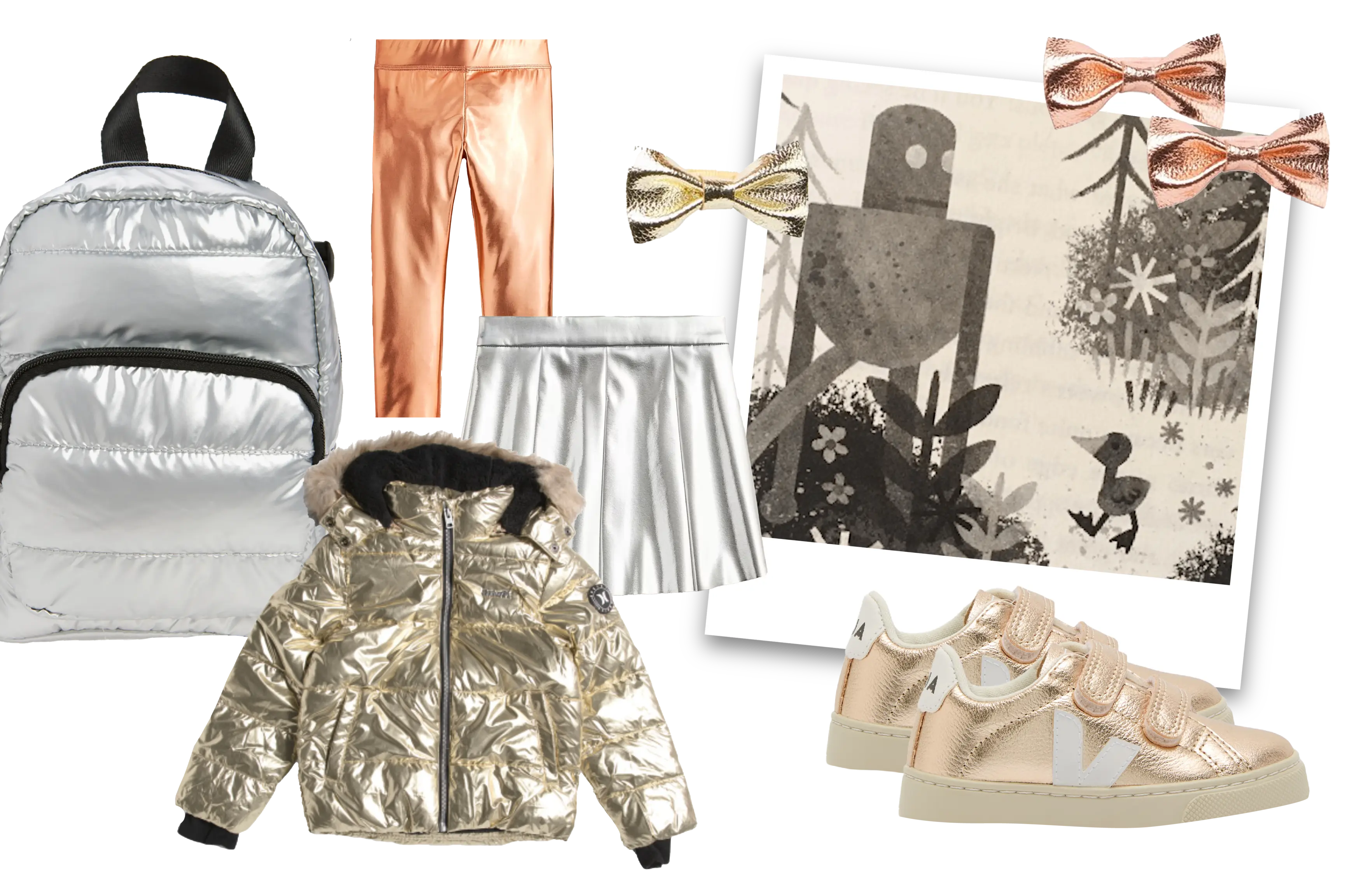 All the pleats, please! Kids will love this folded style with anything and everything this season—especially in a metallic fabric that shimmers and shines.
