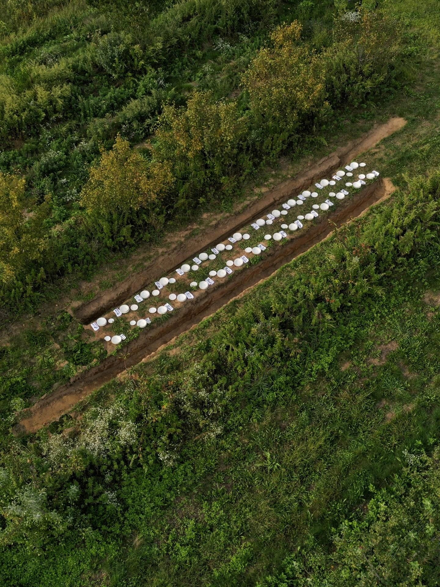 “Farm to table” takes on new meaning with the earthwork / dining table created from farm soil for Farm is Table, part of A New Futurist Cookbook by Allan Wexler @allanwexlerstudio and Michael Yarinsky @tangible.space. The long table is formed out of soil, with seating dug into the earth. Flowers for the meal were planted in the table itself and weeds, grasses and wildflowers were the centerpiece.