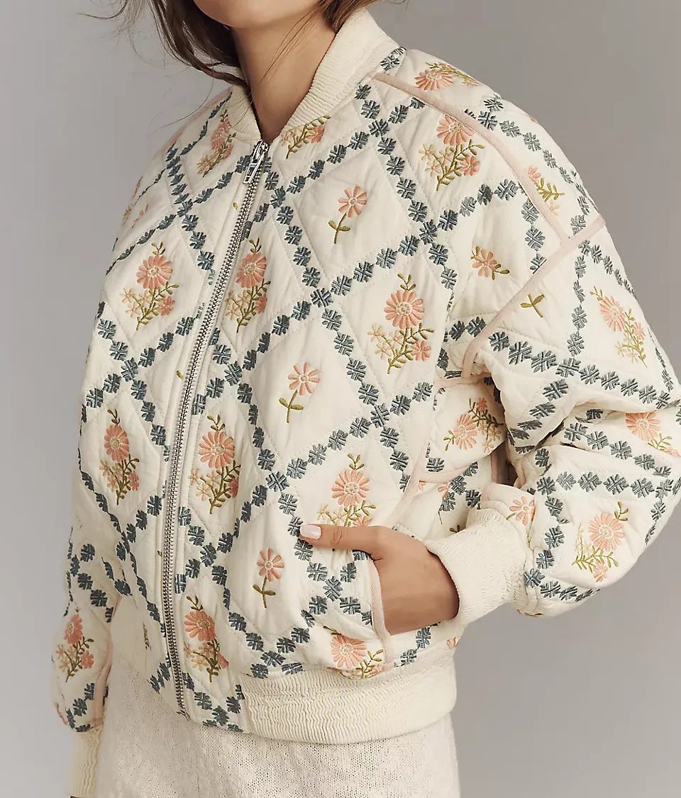 This fresh take on the classic bomber features delicate embroidery and a just-right, waist-skimming length.