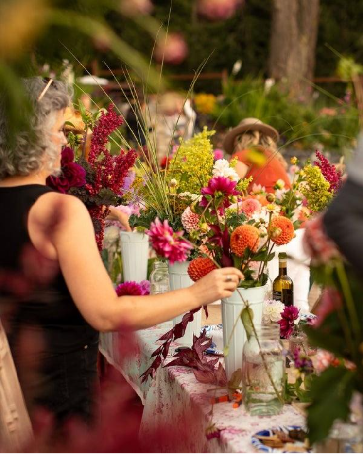 Between the petal-filled activities, guests unwind with sound baths, yoga, kayaking and group hikes. It’s a blend of a creative workshop and wellness escape, and entirely about finding beauty in the details, like the smell of fresh lavender or the way golden hour hits a dahlia field just right.