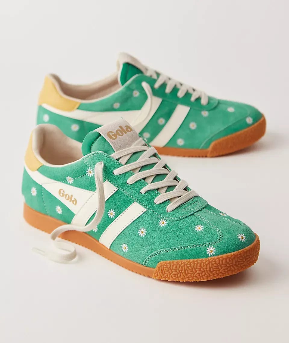 The signature Gola sneaker you know and love, featuring sleek suede uppers, leather overlays, and a textured gum sole. Now adorned with dainty flower detailing.