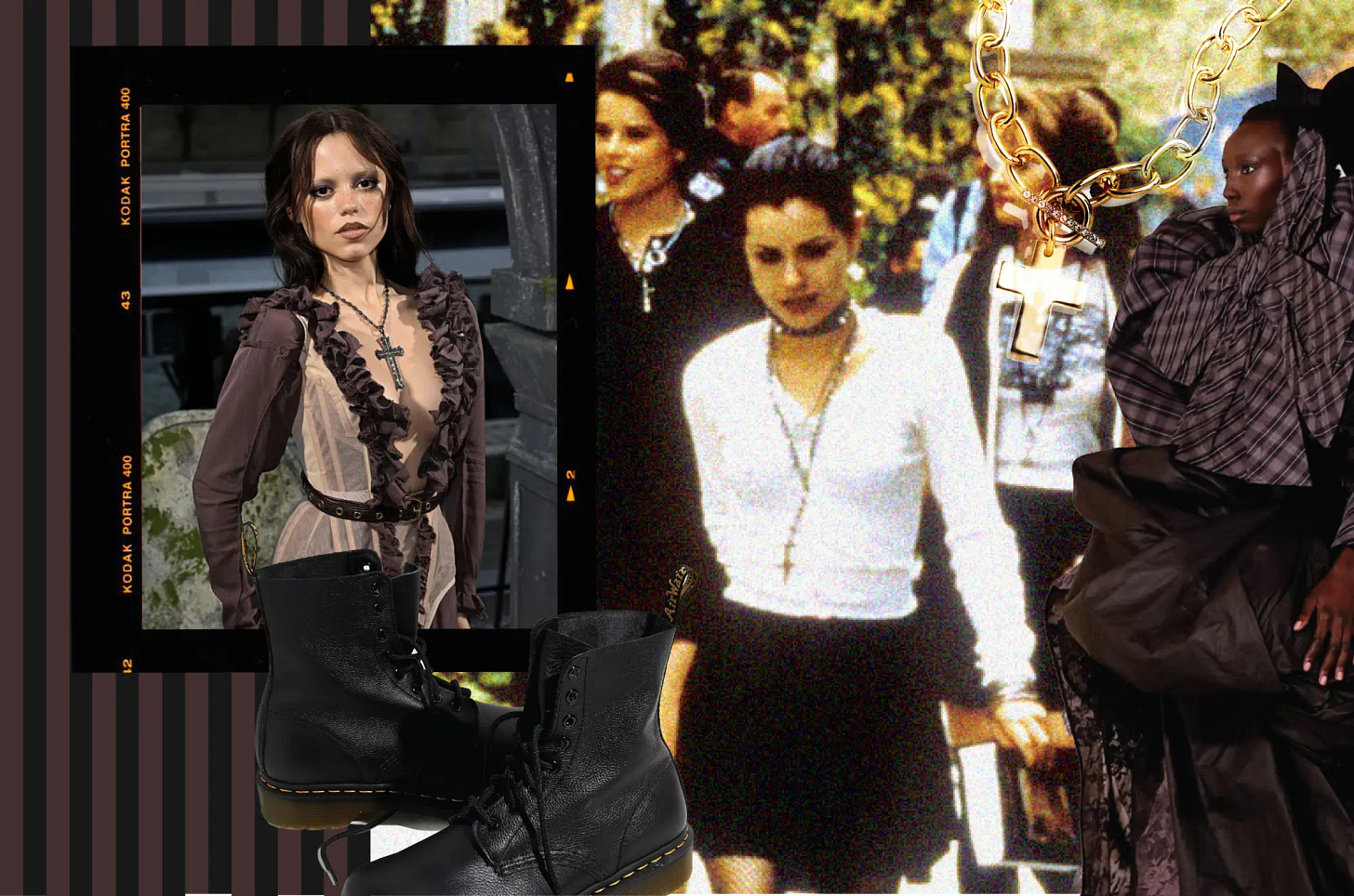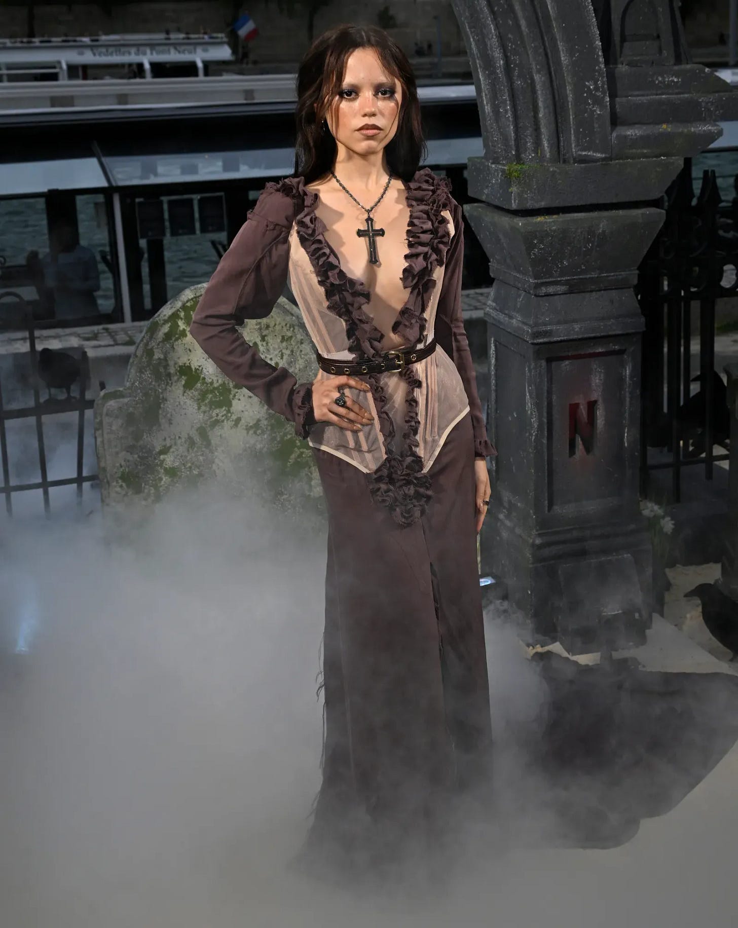 Ortega is leading the charge into the afterlife with the buzzy (but fake) trailer for Dracula and her Wednesday press tour, which has turned into a full-blown gothic fantasy. Her Ashi Studio āmelted waxā couture and Ann Demeulemeester lace gowns are proof that goth can extend beyond Halloween. Itās high fashion with fangs.