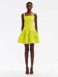 If Carrie and Aleksandr had gone to the U.S. Open, instead of the ballet, this is what she would have worn. Neon yellow (green?) cotton poplin ignites the silhouette of this daring Oscar de la Renta mini dress.