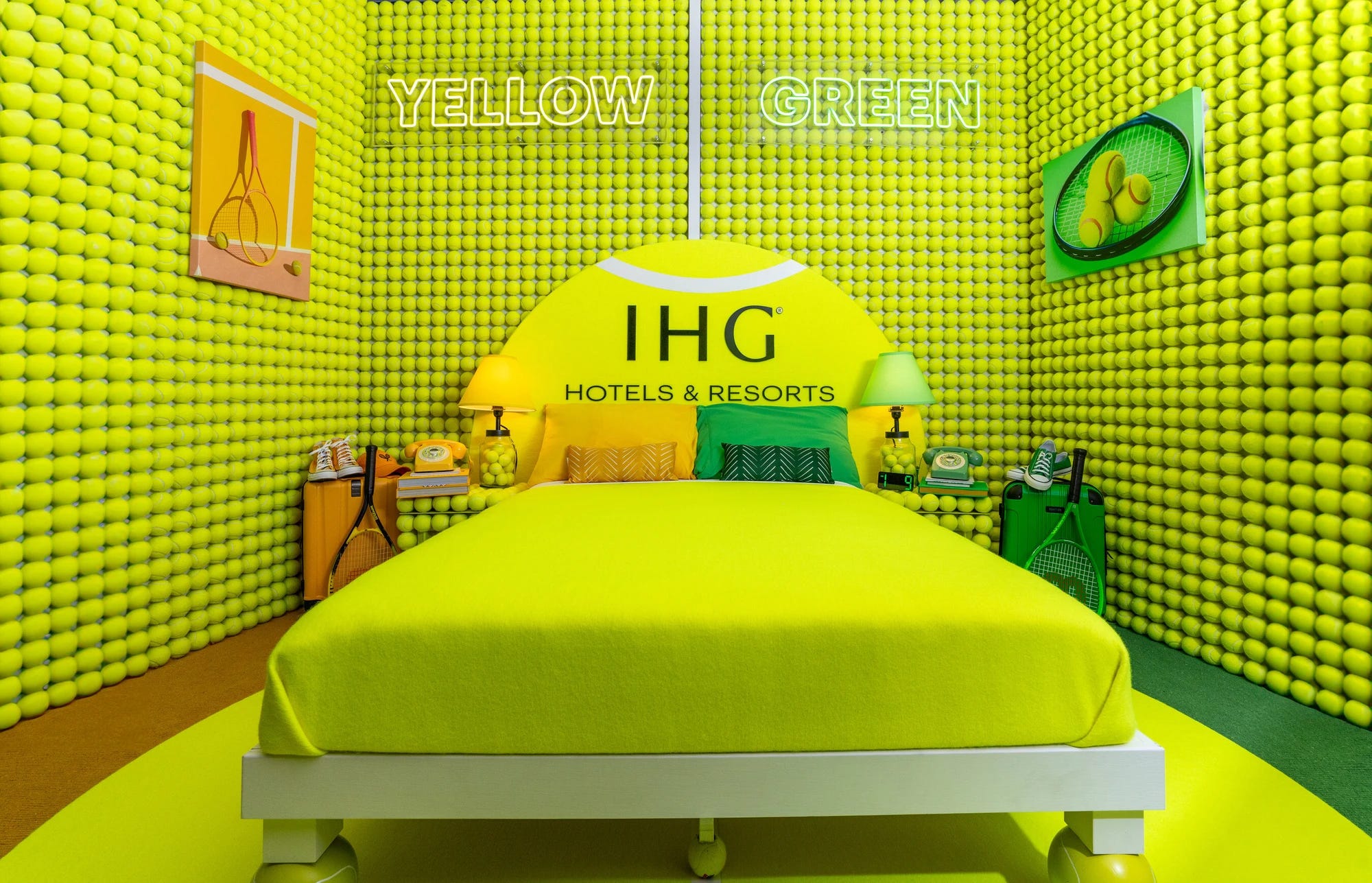 Asking tennis fans to weigh in, a nationwide survey discovered that opinions are split. 56% of Americans believe a tennis ball is yellow, while 44% are convinced it's green*. IHG decided to get in on the debate by launching an over-the-top, tennis-ball-themed suite that caters to both sides of the court.