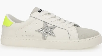 A sporty sneaker features a star logo and eye-catching panels for chic style.