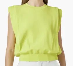 Padded shoulders lend plenty of drama to a sleeveless top completed by a ribbed waist.